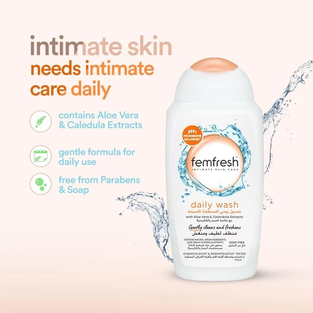 مجموعة منتجات فيم فربش للعناية بالمنطقة الحميمة، تتضمن غسولًا يوميًا، سبراي (بخاخ) منعش، وبودرة لامتصاص الرطوبة،. صُممت هذه المنتجات لتنظيف المنطقة الحساسة بلطف، والحفاظ على توازن درجة الحموضة الطبيعي، وتوفير شعور بالانتعاش والراحة والثقة.