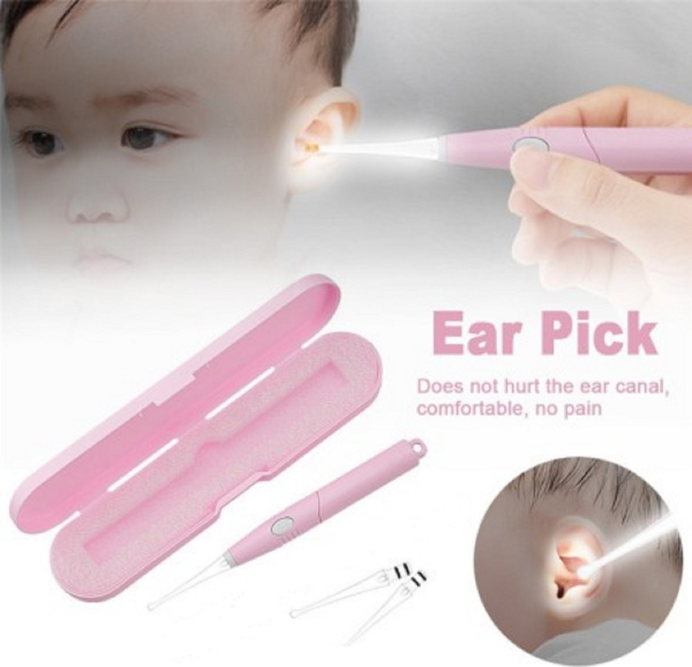 منظف ومزيل شمع الأذن للرضع بإضاءة ليد Earpick أداة رعاية صحية مضيئة مزودة بملعقتين بحجمين مختلفين لتنظيف الافرازات الشمعية للأطفال كما تستخدم لتنظيف الانف