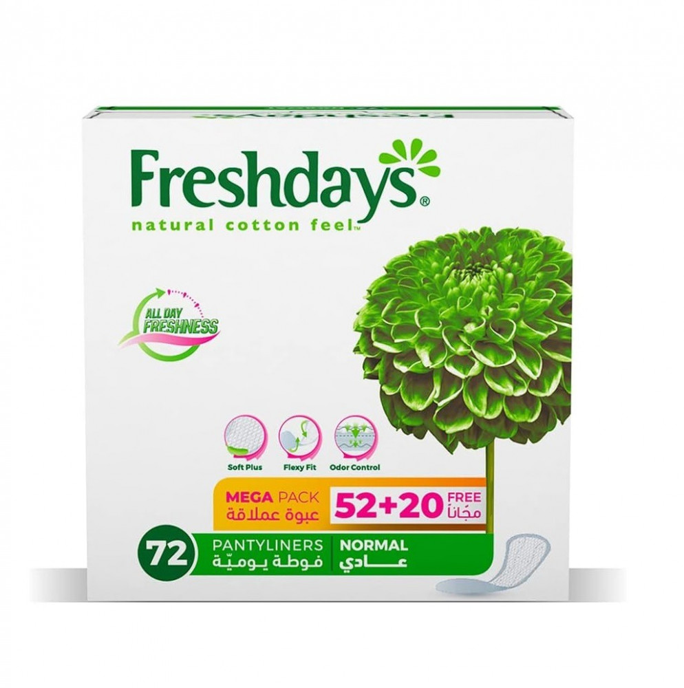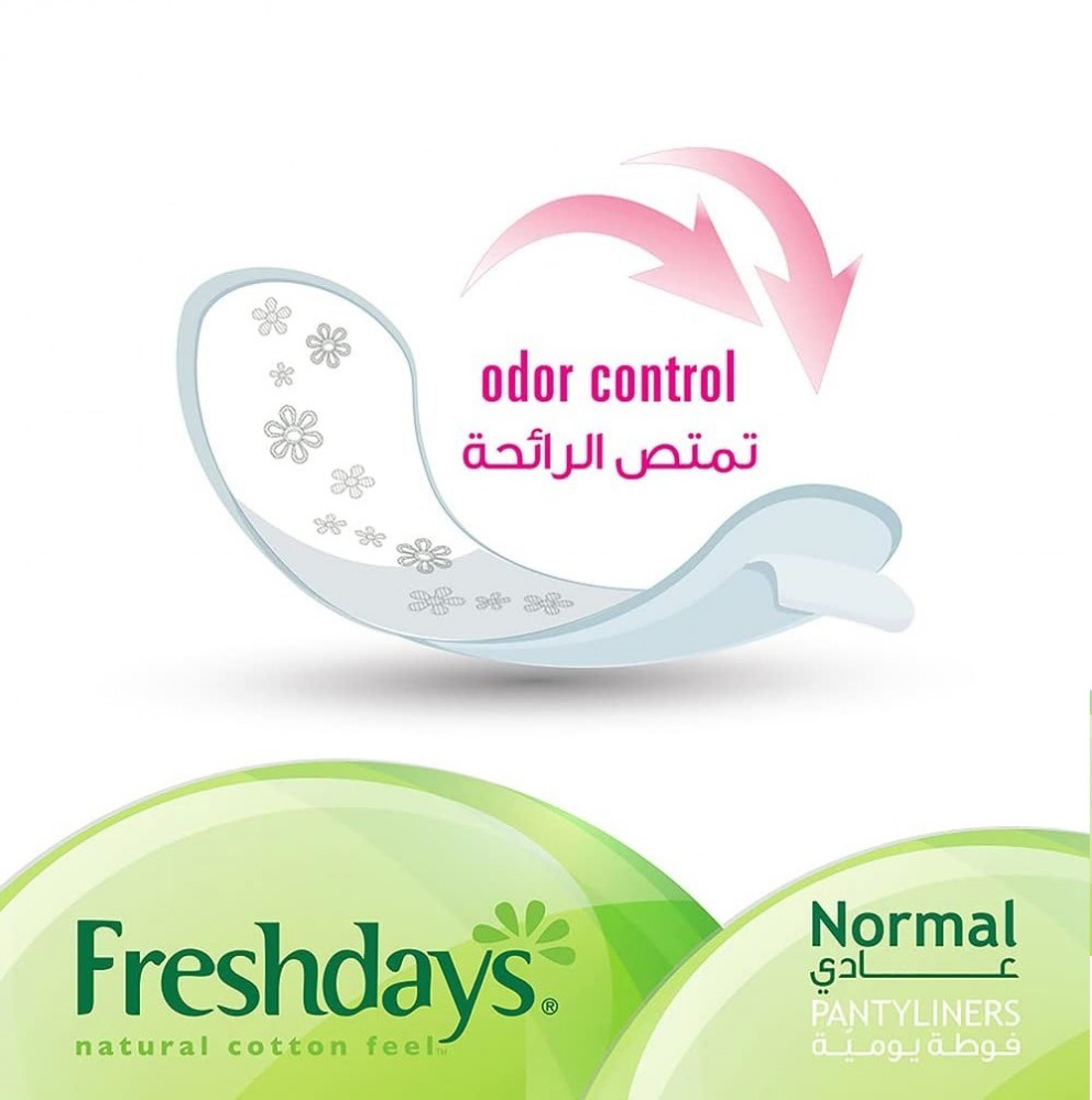 استمتعي بالراحة مع فوط فريش ديز ليوم منعش وآمن وخالٍ من الروائح. اختاري الشكل الذي يناسب جسمك وتصميم سروالك الداخلي، كل ذلك بغلاف بملمس القطن الطبيعي 100٪